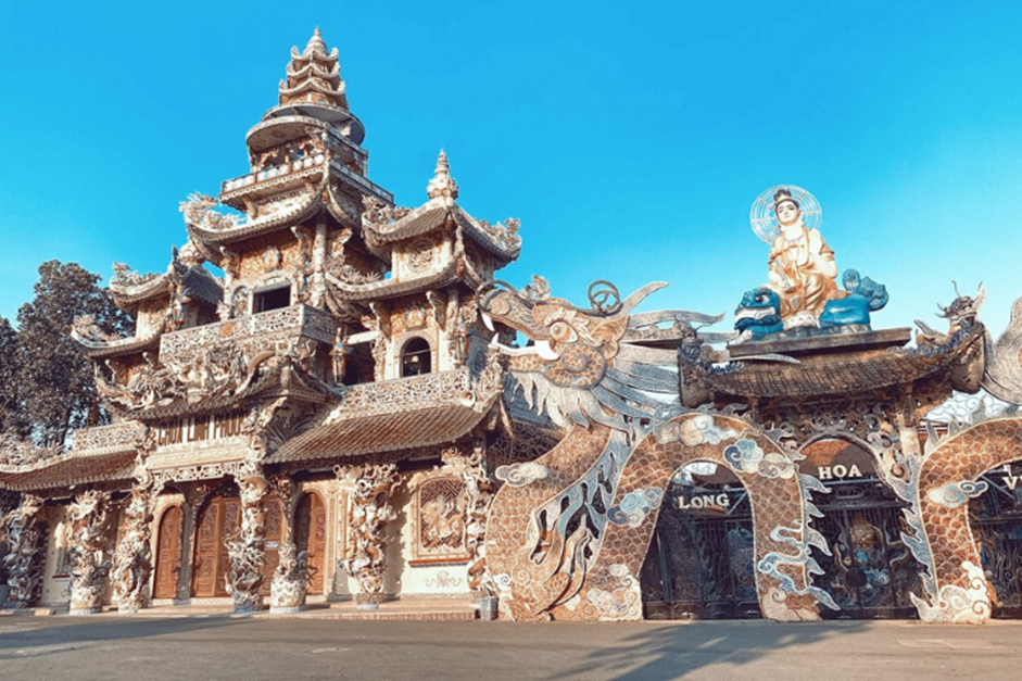 Chùa Linh Phước hay còn được biết đến với tên gọi khác là chùa Ve Chai. Chùa nằm ở vùng ngoại ô, cách trung tâm khoảng 8km. Địa điểm này không ít lần gây “bão” trên các trang mạng xã hội với những tấm hình check in đầy nghệ thuật của các tín đồ sống ảo. Cũng nhờ đó mà ngôi chùa ngày càng nổi tiếng và hấp dẫn nhiều du khách thập phương ghé thăm. Điểm nhấn độc đáo của chùa Linh Phước ở Đà Lạt là các công trình trong khuôn viên chùa được khảm các mảnh sành, sứ, chai bên ngoài. Do đó, ngôi chùa này còn được gọi với cái tên khác là chùa Ve Chai. Chùa có diện tích 6.666,84m2, chánh điện chùa rộng 12m, dài 33m với 2 hàng cột rồng khảm sành. Đây cũng là ngôi chùa duy nhất ở Việt Nam sở hữu đến 11 kỷ lục.